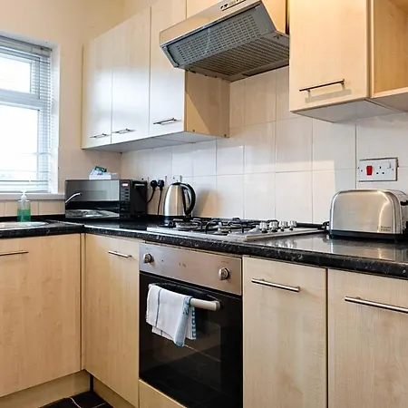 Geniet van een ingerichte kitchenette in Contractor Base - Tvs In Rooms - M4 Nearby met een koelkast, een oven en keukengerei voor uw gemak. Woodfield Street bushalte is op ongeveer 10 minuten te voet van Contractor Base - Tvs In Rooms - M4 Nearby verwijderd.